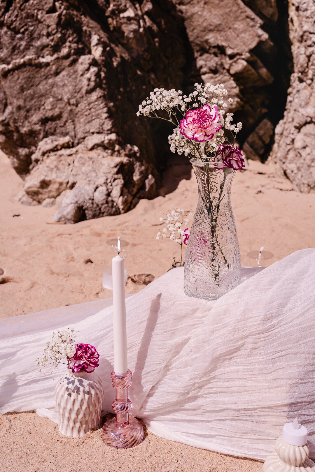 Décoration de base : vases, bougies, lanternes, voilage pour le pupitre