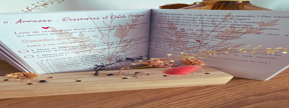 Vous rêvez d'une cérémonie unique et authentique ? Vous êtes futurs mariés ou officiant en herbe et vous voulez créer une cérémonie laïque qui décoiffe ? Dans mon livre 'Ma cérémonie sans prise de tête', je vous guide pas à pas avec bienveillance et vous dévoile mes petits secrets pour une célébration qui vous ressemble à 200% !